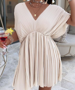 ?Fashion Solid Fold V Neck Cake Skirt Dresses(4 colors)
