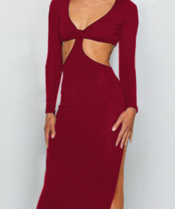 ?Elegant Solid Hollowed Out Backless Slit V Neck Pencil Skirt Dresses