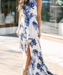 ?Fashion Elegant Floral Frenulum High Opening Halter A Line Dresses(3 Colors)