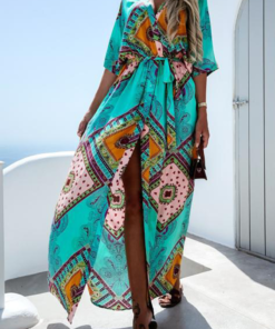 ?Fashion Elegant Floral Split Joint Flounce V Neck Irregular Dress Dresses(4 colors)