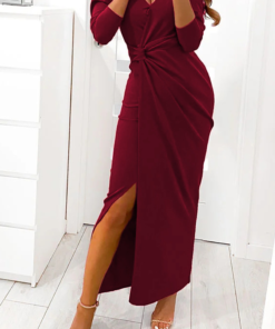 ?Fashion Elegant Solid Slit Fold V Neck Dresses(3 colors)