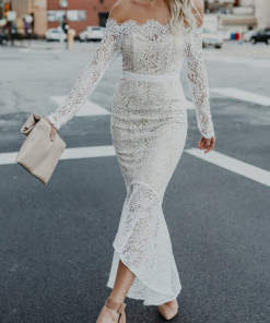 ?Fashion Elegant Solid Lace Flounce Off the Shoulder Trumpet Mermaid Dresses