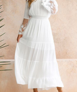 ?Elegant Solid Lace Hollowed Out Split Joint V Neck Evening Dress Dresses
