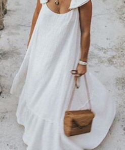 ?Fashion Street Solid Split Joint Spaghetti Strap Princess Dresses