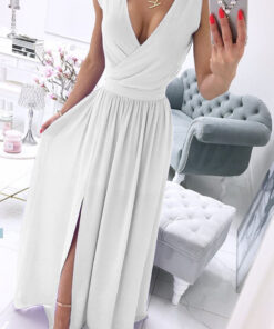 ?Fashion Street Solid Split Joint V Neck A Line Dresses(5 Colors)