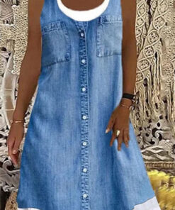 ?Fashion Street Solid Split Joint U Neck A Line Dresses