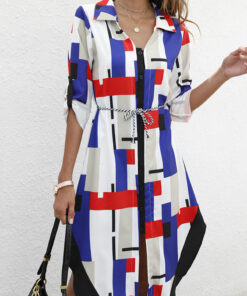 ?Fashion Street Print Turndown Collar Irregular Dresses(3 Colors)