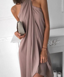 ?Fashion Elegant Solid Split Joint Halter Irregular Dress Dresses