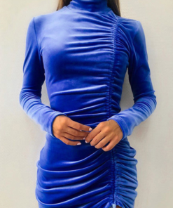 ?Fashion Elegant Solid Split Joint Fold Half A Turtleneck Pencil Skirt Dresses