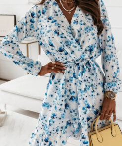 ?Fashion Elegant Solid Slit With Belt V Neck Wrapped Skirt Dresses