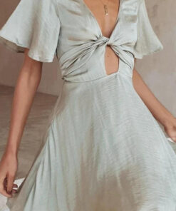 ?Fashion Street Solid V Neck A Line Mini Dresses(4 Colors)