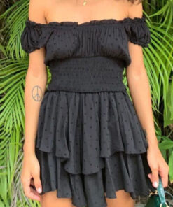 ?Fashion Street Solid Split Joint Off the Shoulder Waist Skirt Dresses
