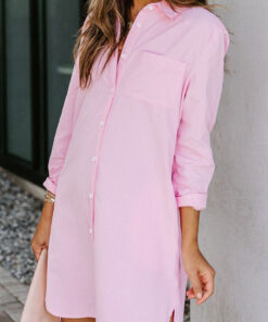 ?Fashion Street Solid Split Joint Turndown Collar Shirt Dresses