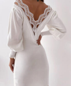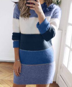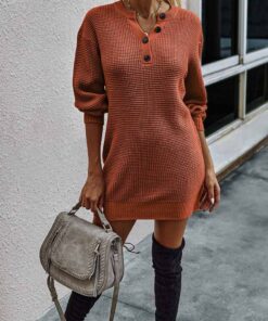 ⭐Solid Long Sleeves Knee Casual Elegant Sweater Dresses