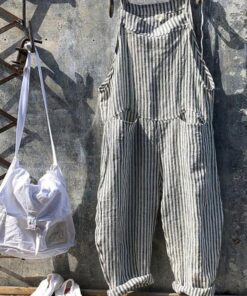 Striped Adjustable Shoulder Strap Loose Jumpsuit With Pocket