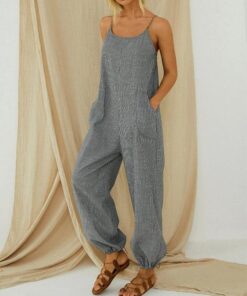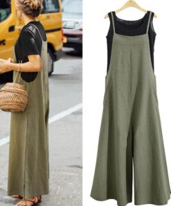Women Casual Pure Color Loose Linen Tank Jumpsuit