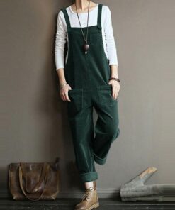 Vintage Corduroy Jumpsuits Casual Straps Overalls Loose Harem Pants Rompers