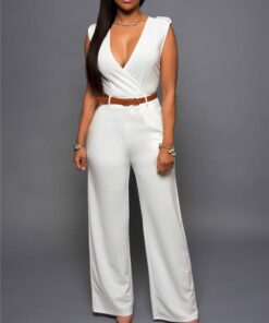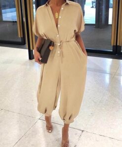 V Neck Solid Casual Short Sleeve Jumpsuits