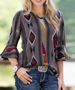 Leopard Patchwork V Neck Loose Fit Shirts&Tops