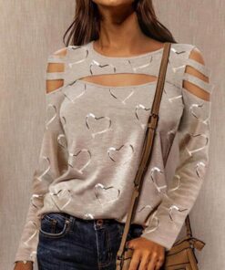 Multi Pattern Printed Long Sleeve Hollow out Shirts & Tops for Halloween