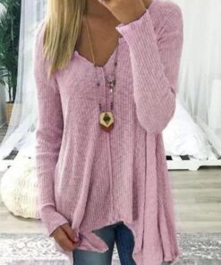 V neck Cotton Solid Casual Long Sleeve Sweater