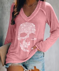 Solid Sequins V-Neck Long Sleeves Casual Blouses