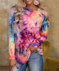 Tie Dye Criss-Cross Slash Neck Long Sleeve Blouse