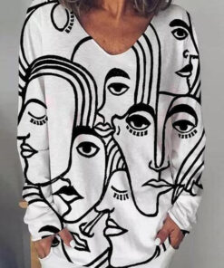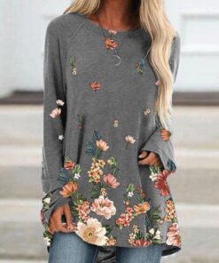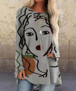 Women Print Long Sleeve Irregular Plus Size Loose Blouse