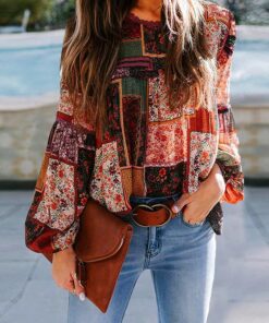 Women’s Bohemian Print Casual Lantern Sleeve Blouses