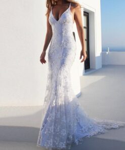 Women Elegant Maxi Slim Bodycon White Lace Dress