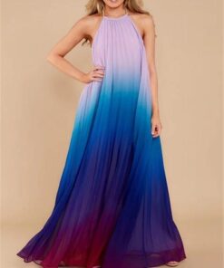 Women Ombre Chiffon Gradient Halter Sleeveless Evening Maxi Dress*