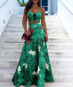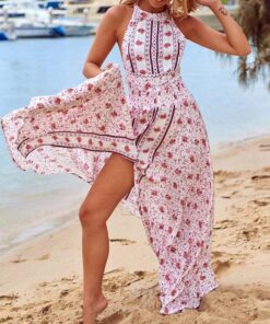 Women Halter Neck Floral Vacation Slit Maxi Dress*