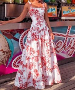 Women Fashion Leopard V-Neck Sleeveless Maxi Dress