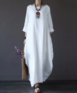 Women Plus Size Long Sleeve Loose Casual Irregular Maxi Dress
