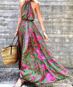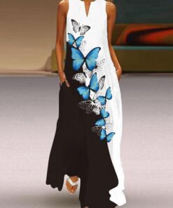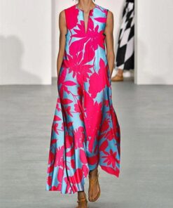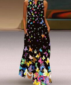 Women’s Sleeveless Long Dress V-Neck Print Dress