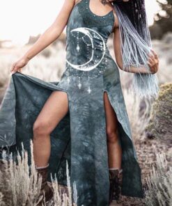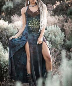 Women’s Retro Tribal Dyeing Sexy Split Slim Dress