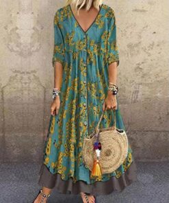 Women’s 3/4 sleeves Denim Ruffled Maxi Dress