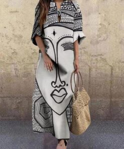 Fashion Face Printed Plus Size Vintage Maxi Dress