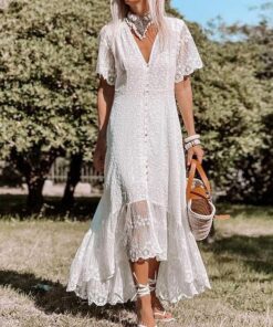 Elegant Bohemian Lace Holiday V Neck Maxi Dress*