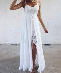 Elegant Spaghetti Strap Holiday Floral Lace Slit Dress