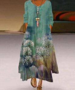 Long Sleeve Crew Neck Buttoned A-Line Maxi Dresses
