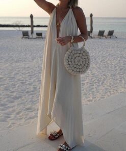 Irregular Halter Neck Sleeveless Pure Color Vacation Dress