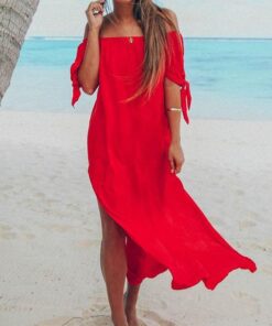 Oversized Women Side Split Long Maxi Dress Off The Shoulder Loose Dress