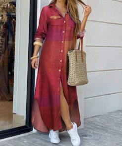Plus Size Women’s A-Line Long Sleeve Dress Button up Slit Maxi Dress