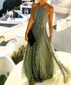 Polka Dot Floral Sleeveless Halter Neck Bohemian Vacation Dress*