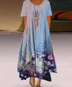 Plus Size Print Short Sleeve A-Line Asymmetrical Maxi Dress