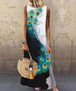 Peacock Feather A-Line Holiday Maxi Dresses*