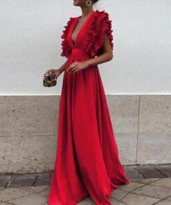 Sexy Gray V Neck Short Sleeves Maxi Dress