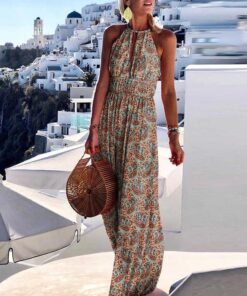 Printing Sleeveless Halter Neck Bohemian Vacation Dress*