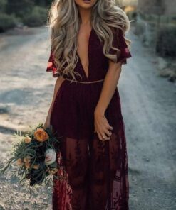 Sexy V Neck Floral Hollow Transparent Holiday Maxi Dress*
